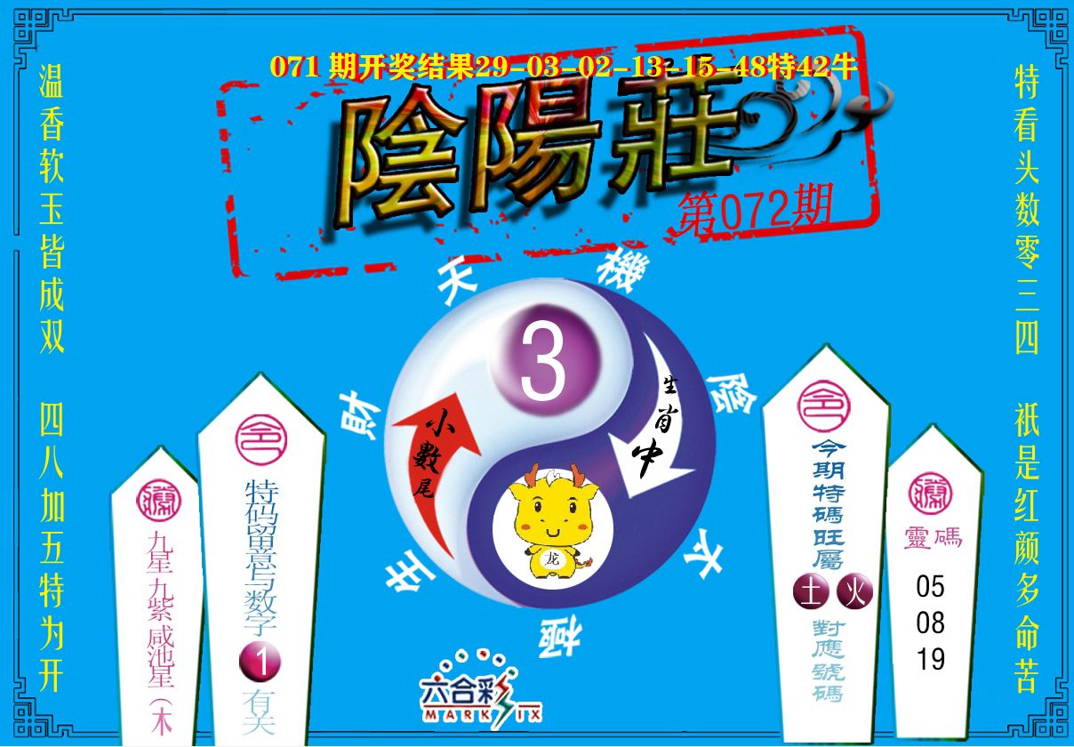 071期必中⑤肖【龙鸡马牛狗】开 牛42 准