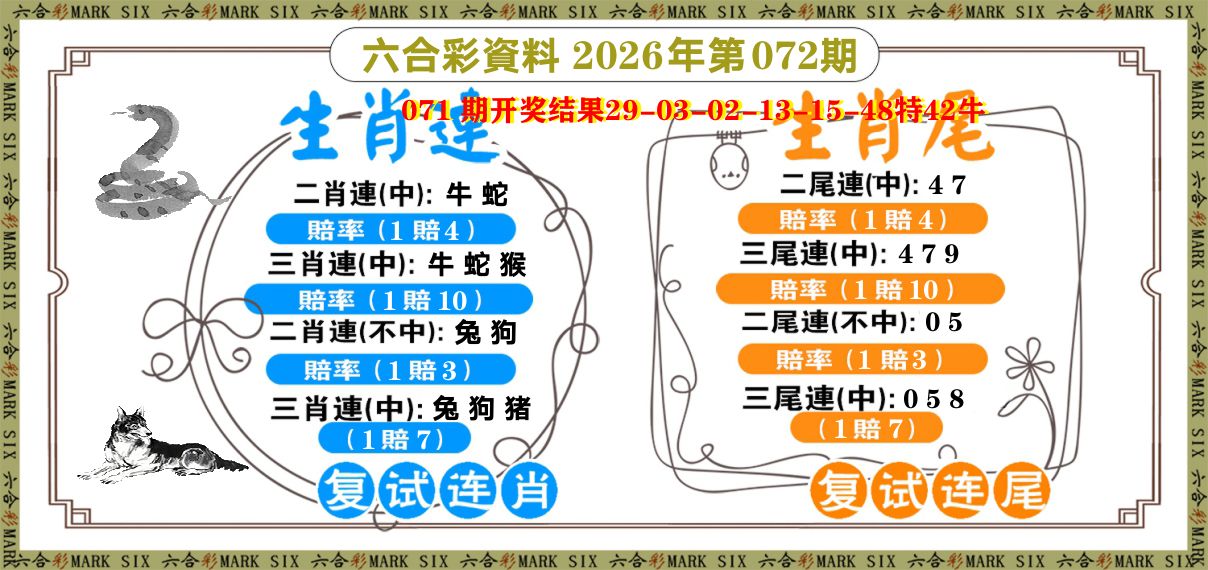 071期: 单双两肖 【双数+鼠虎】 开42牛准