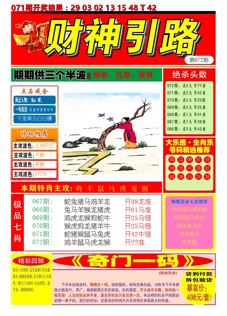 072期:【送特财神】绝杀两肖愿彩民都走上金道